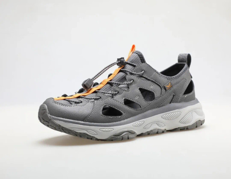 كفش تابستانه مردانه مدل PEGASUS زیره فایلان یا MD PHYLON با زیره فوم (MD) از قوم EVA ساخته شده که با فشرده سازی گرما و قالب گیری شکل میگیرد زیره سبک، نرم و انعطاف پذیر است و نرمی و راحتی فوق العاده ای دارد. رویه مش + چرم مصنوعی قسمت بیرونی محصول ترکیبی از مش (MESH) که یک پارچه با بافت باز و تنفس پذیر است و چرم مصنوعی که ظاهری شبیه چرم طبیعی دارد ساخته شده و مقاومتر در برابر آب و سایش است. محافظت از نوک انگشتان طراحی کفش دارای محافظ نوک انگشتان است که از پا در برابر ضربه های احتمالی محافظت میکند. تهویه و تخلیه سریع آب با وجود روزنه هایی در کفی داخلی و سوراخهایی در زیره در ناحیه باشته آب به سرعت تخلیه شده و جریان هوا در داخل کفش راحت تر انجام می شود. سیستم تنظیم آسان دارای بند کشسان در روی پا و تسمه ای در پشت پا برای تنظیم راحت تر و ایجاد فیتینگ مناسب بر اساس نیاز کاربر سایزبندی:۴۰ تا ۴۶